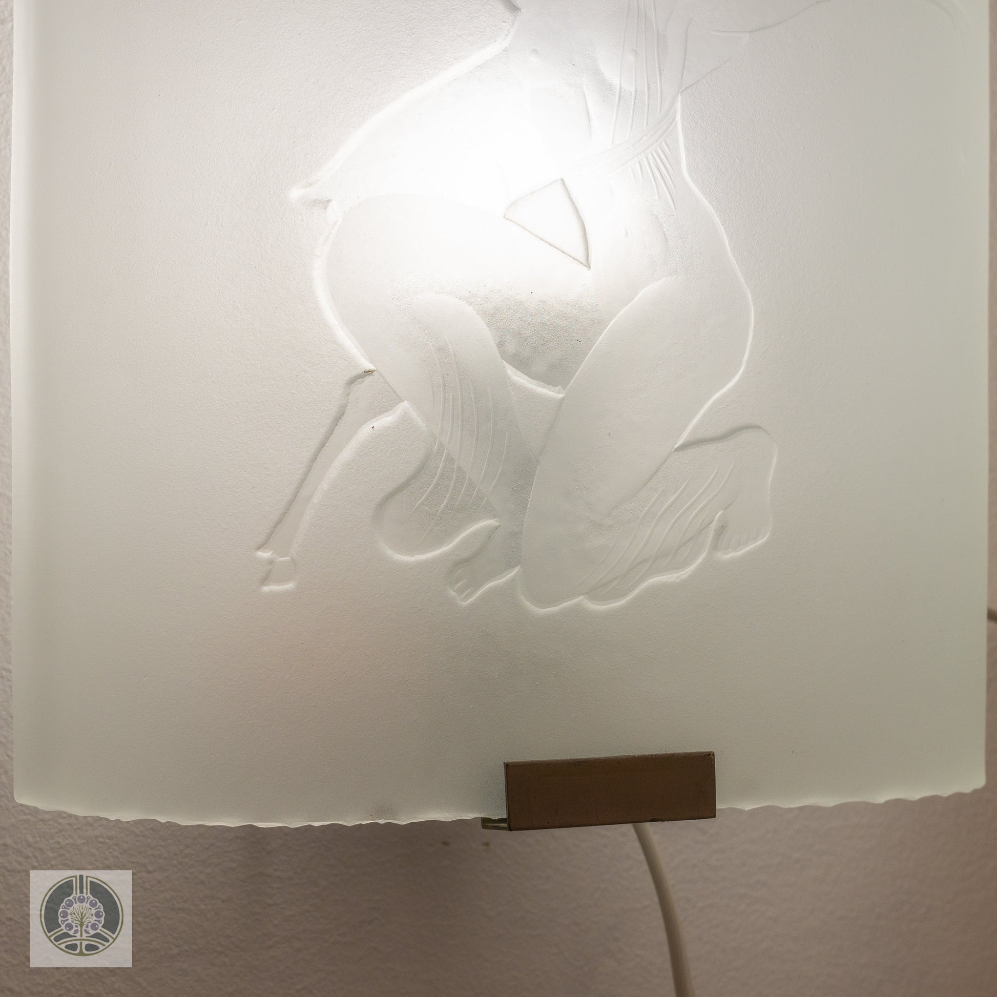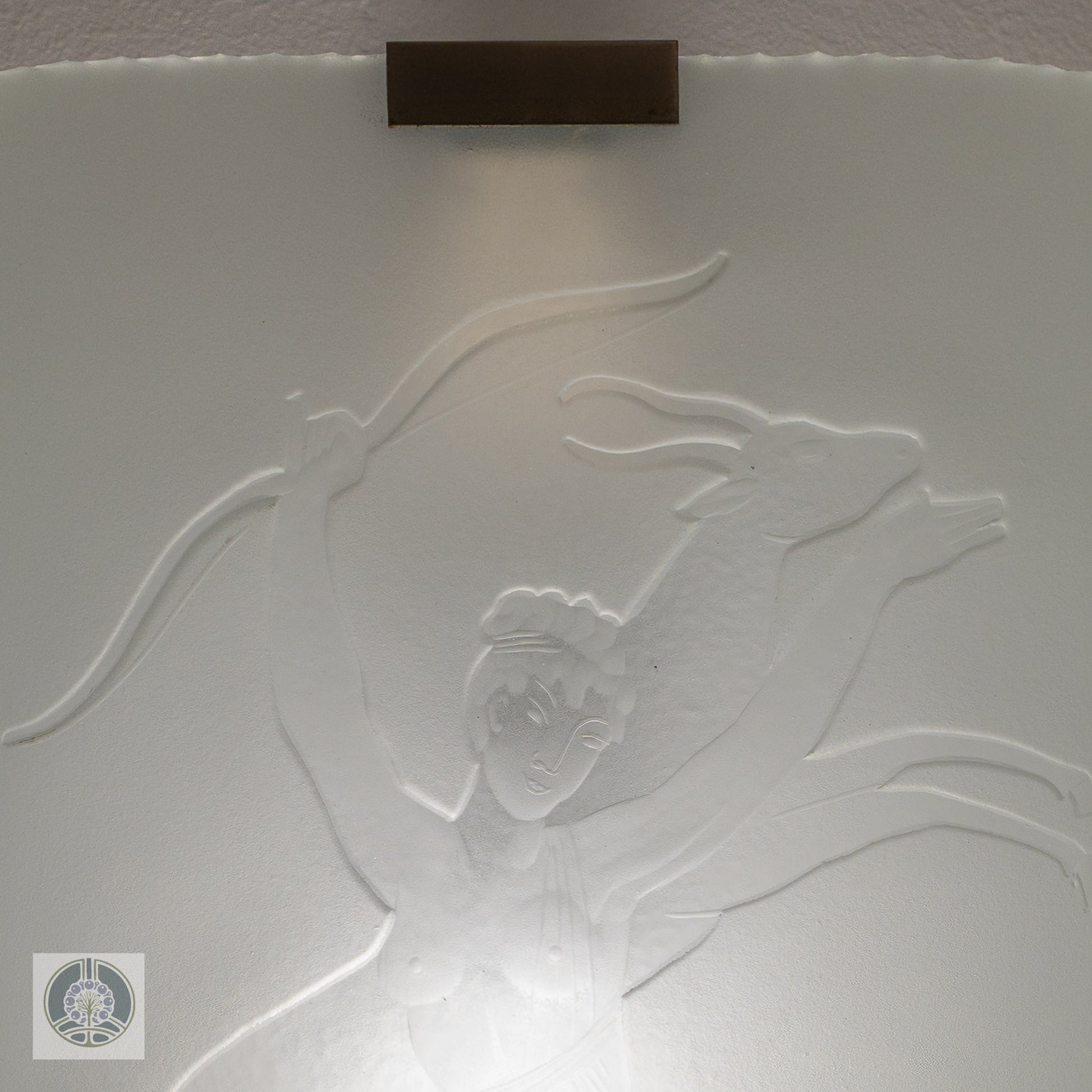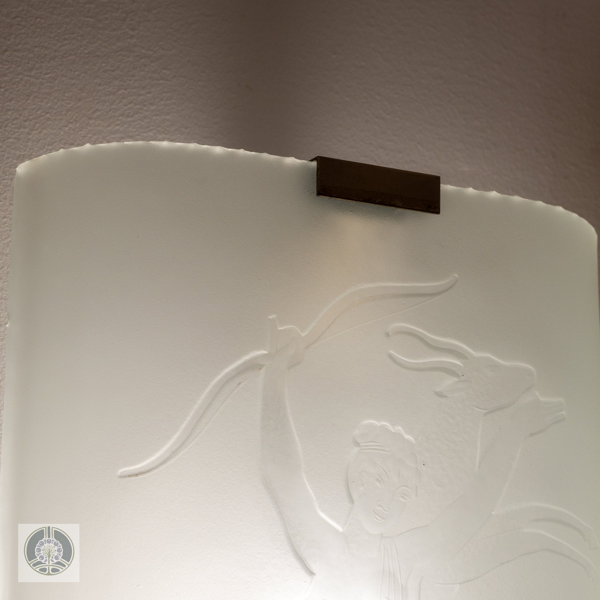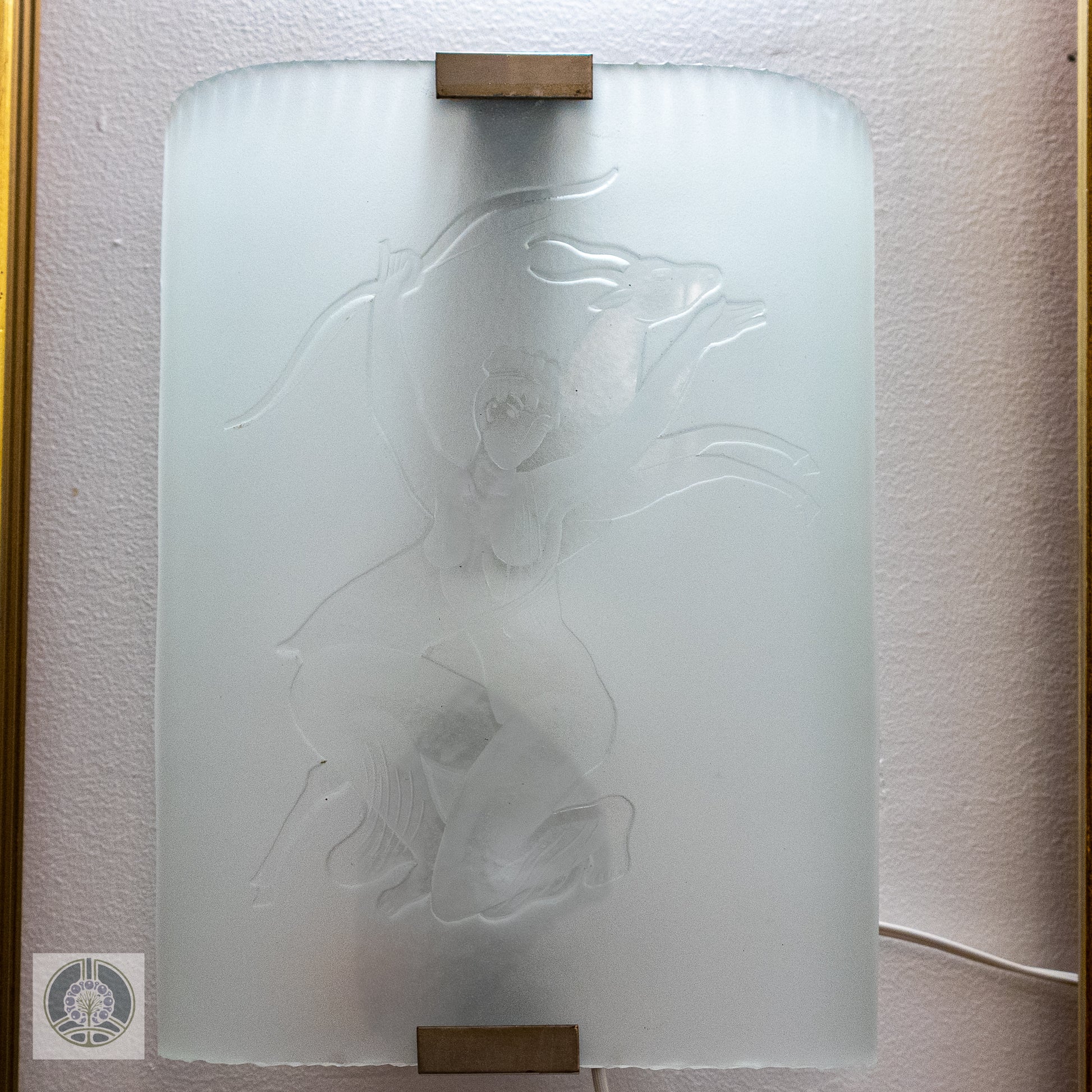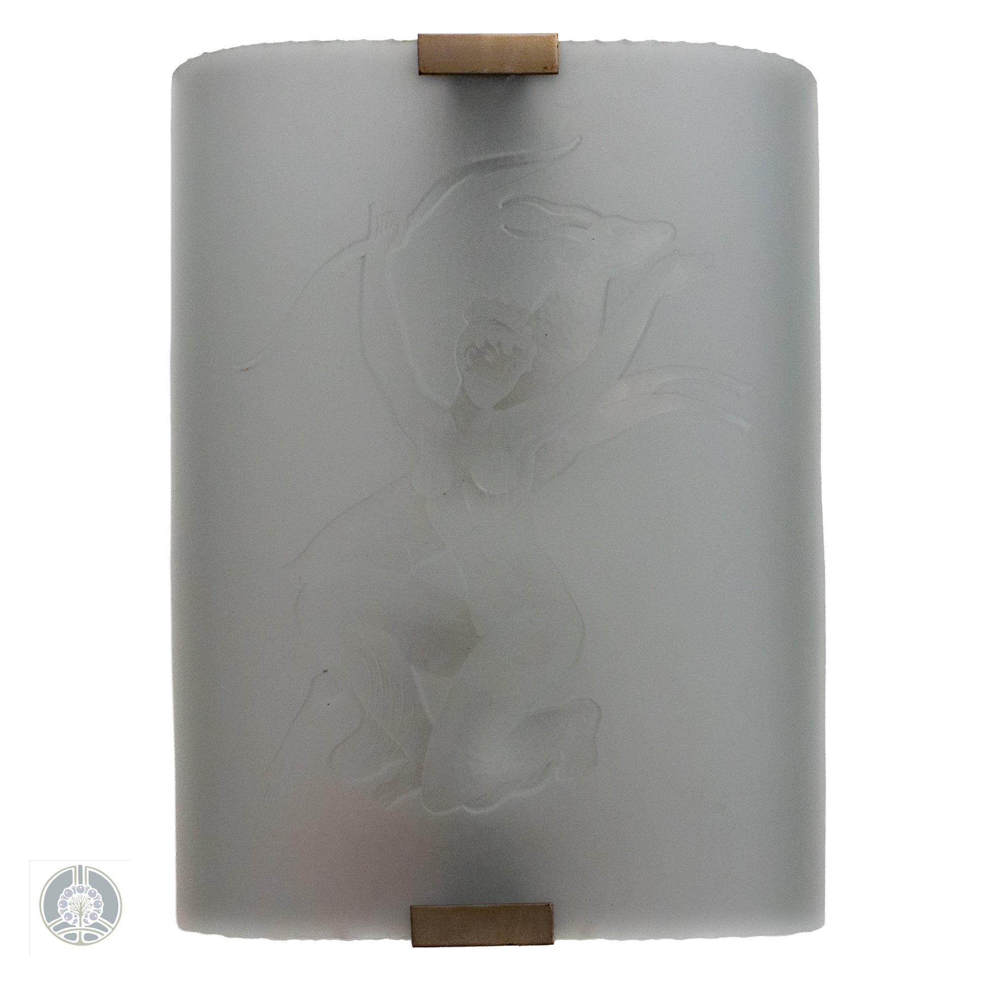 A single wide sconce, etched with the image of the huntress Diana. Mounts one bulb, rewired for US and ready for install on a standard wall box.