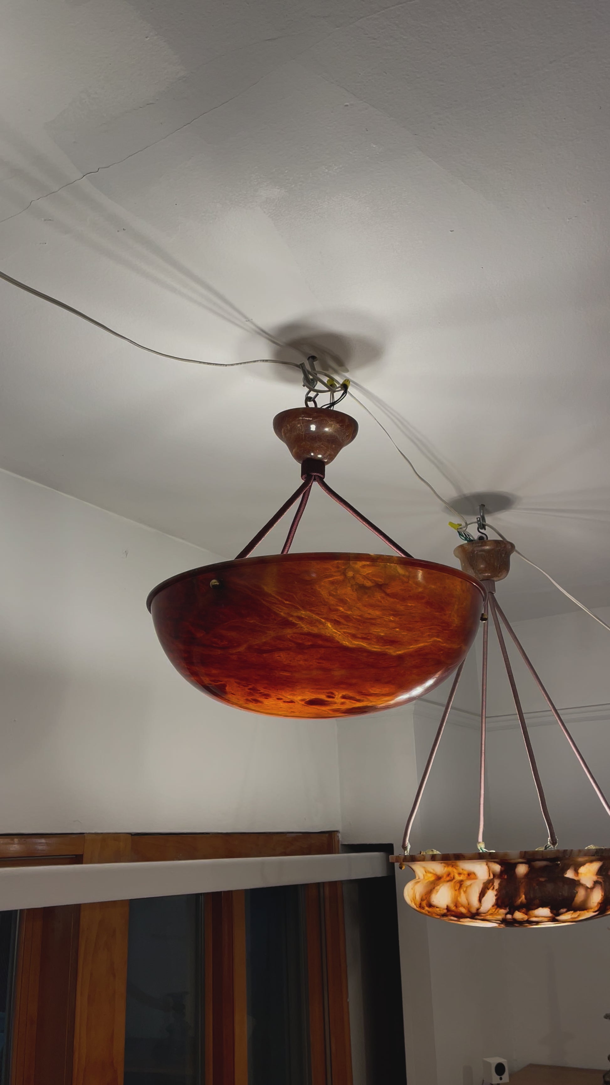 Dramatic Amber Alabaster Pendant, Sweden 1915