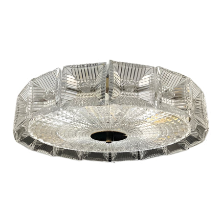 An array of sixteen glistening glass squares form a dazzling ring in this exquisite midcentury pendant, capable of transforming the ambiance of any space. Designed by the renowned Karl Fagerlund for the prestigious Swedish design house Orrefors, its radiance and sophistication are unparalleled.