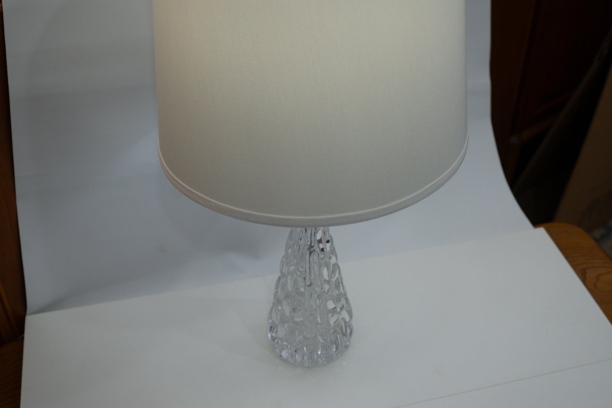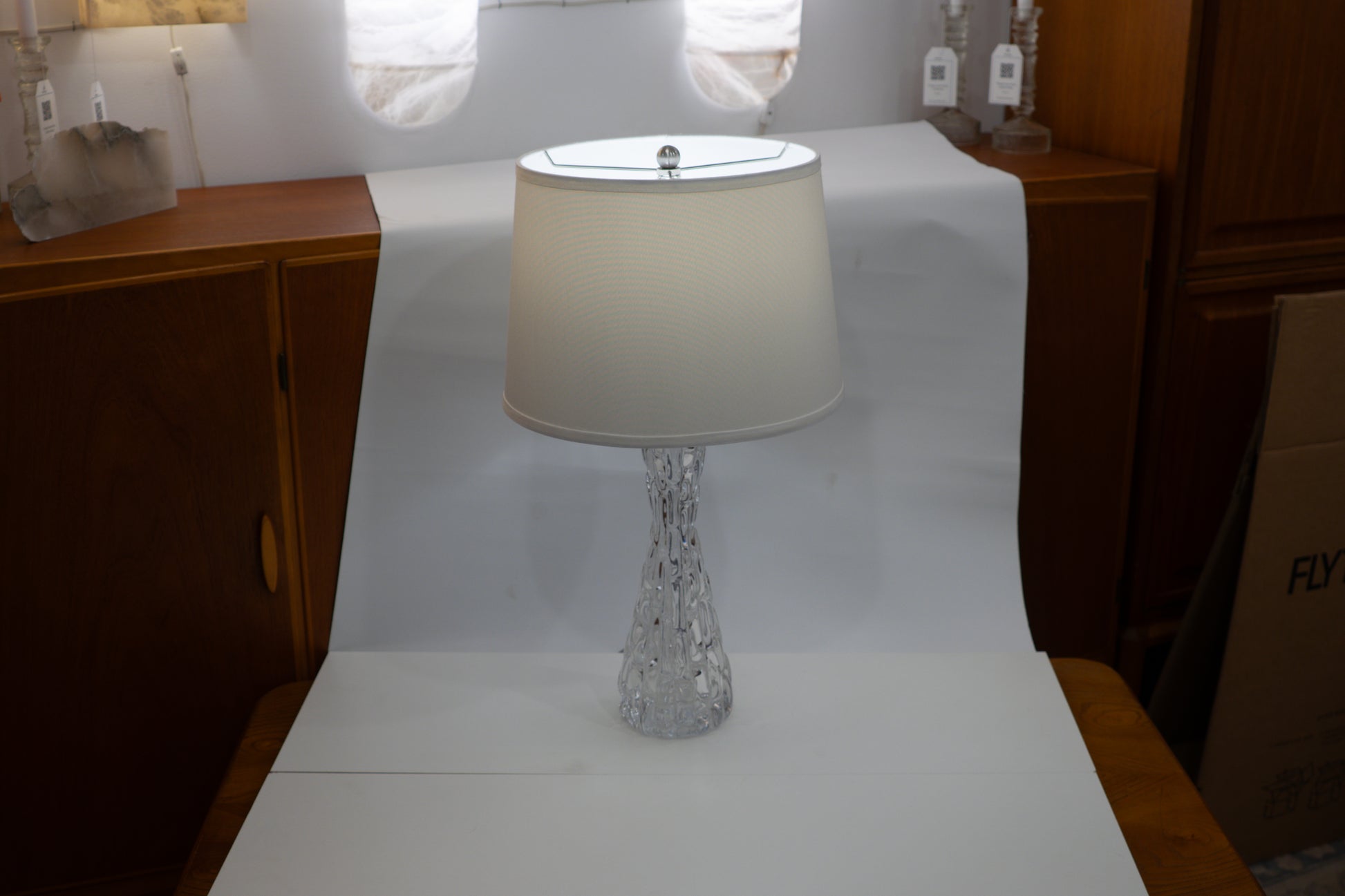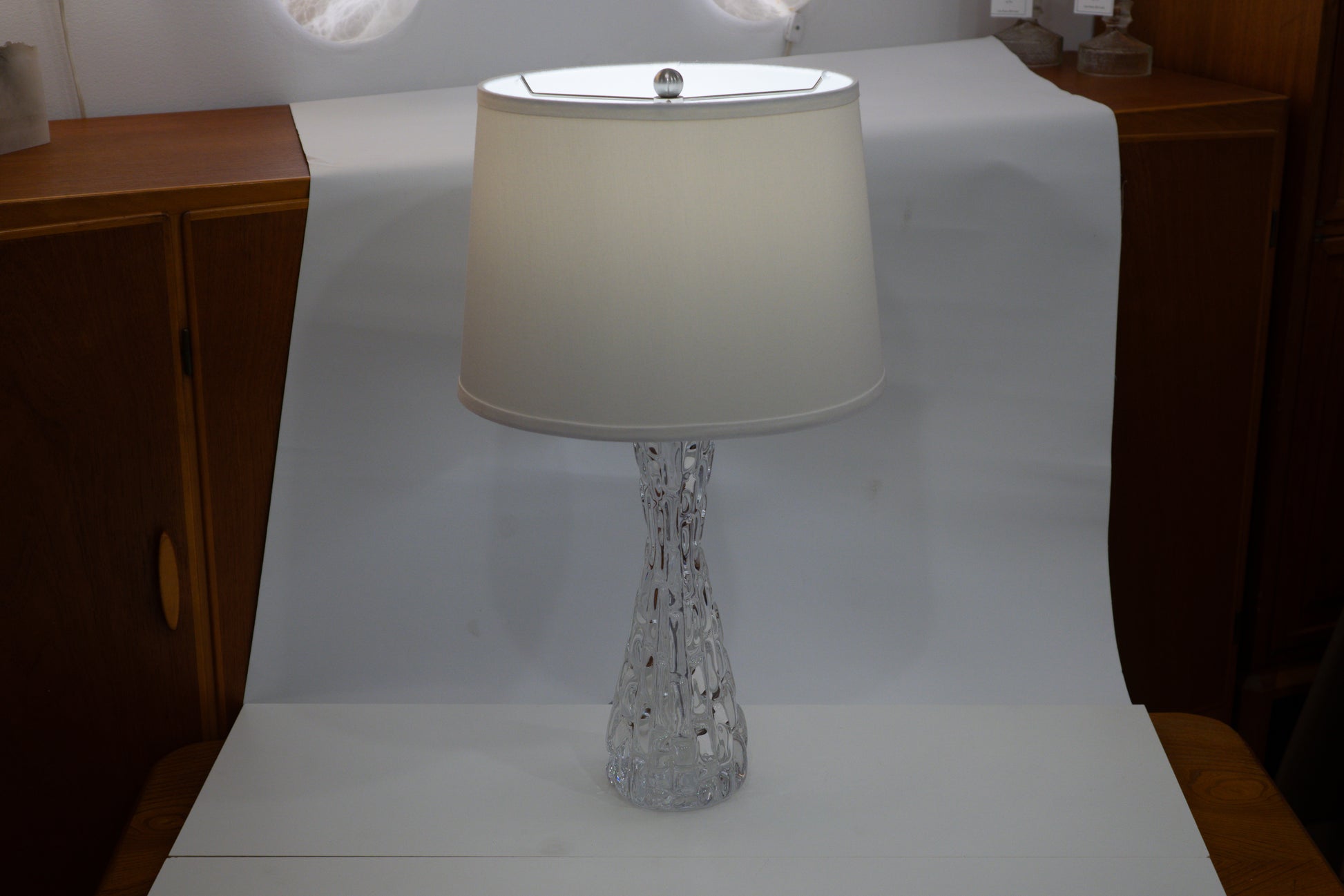 Crafted by renowned designer Carl Fagerlund at the prestigious Orrefors glassworks in Southern Sweden during the 1950's, these exquisite crystal table lamps have been thoughtfully refurbished and rewired for the US market. Shades not included.