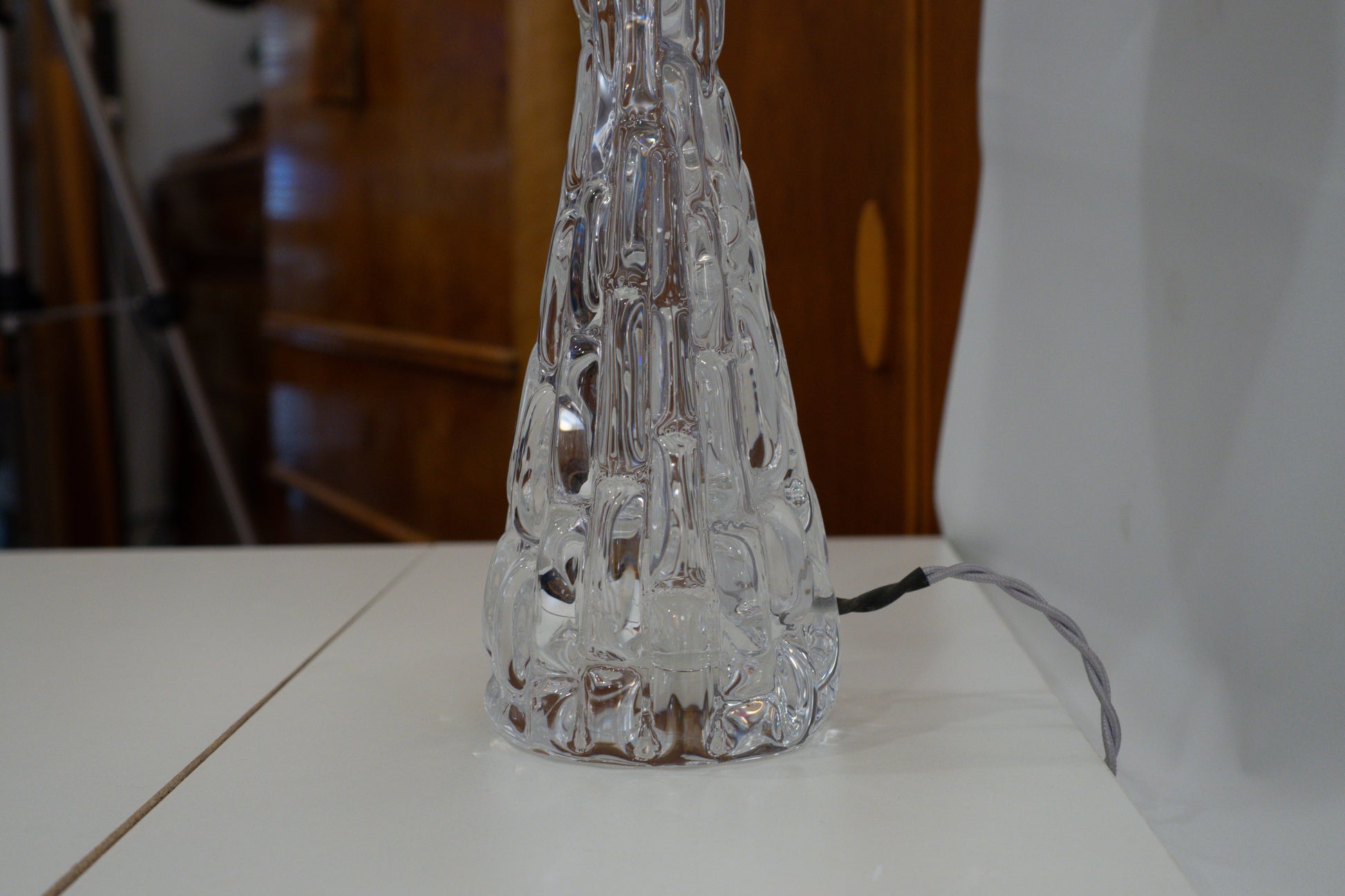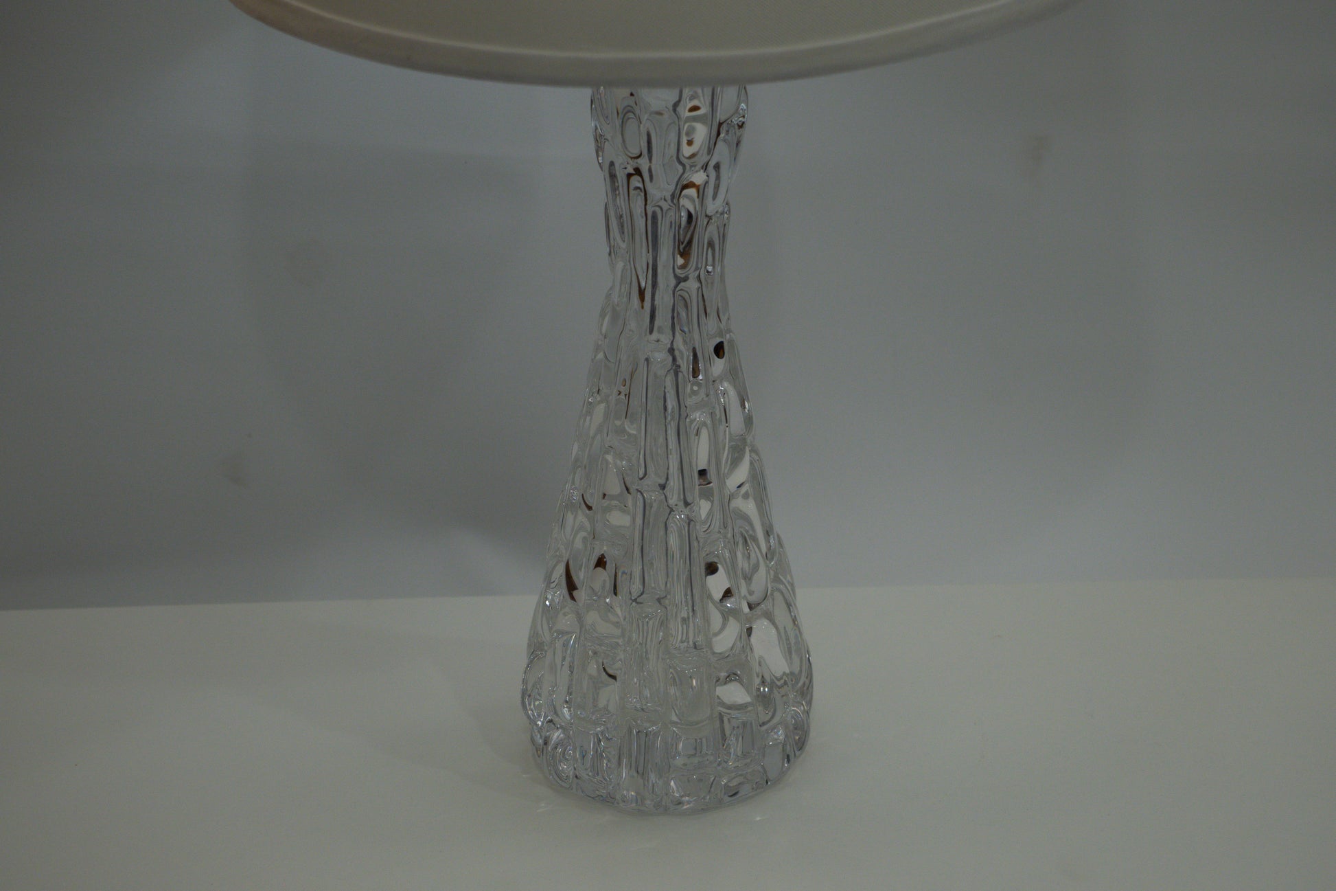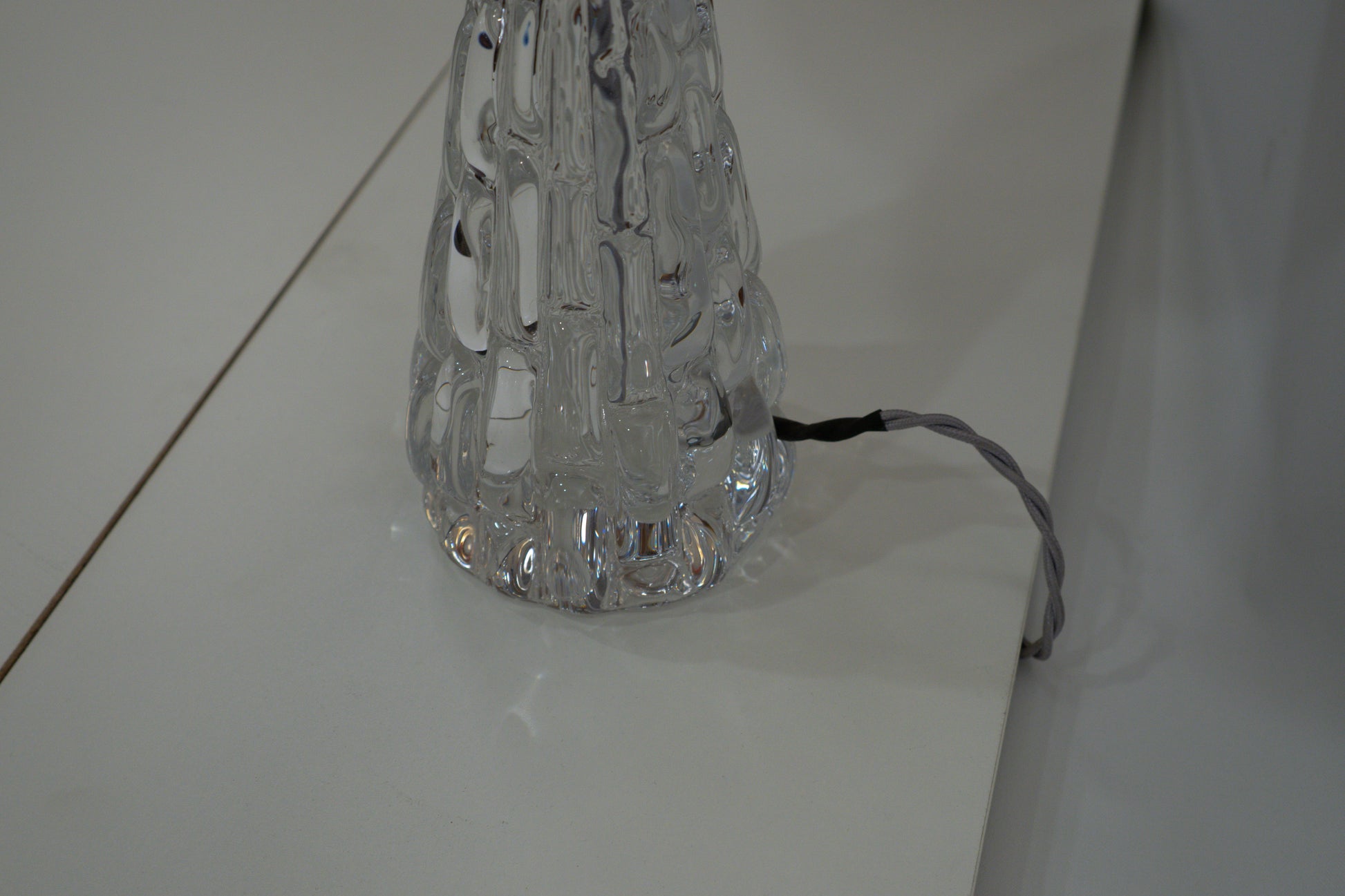 Crafted by renowned designer Carl Fagerlund at the prestigious Orrefors glassworks in Southern Sweden during the 1950's, these exquisite crystal table lamps have been thoughtfully refurbished and rewired for the US market. Shades not included.